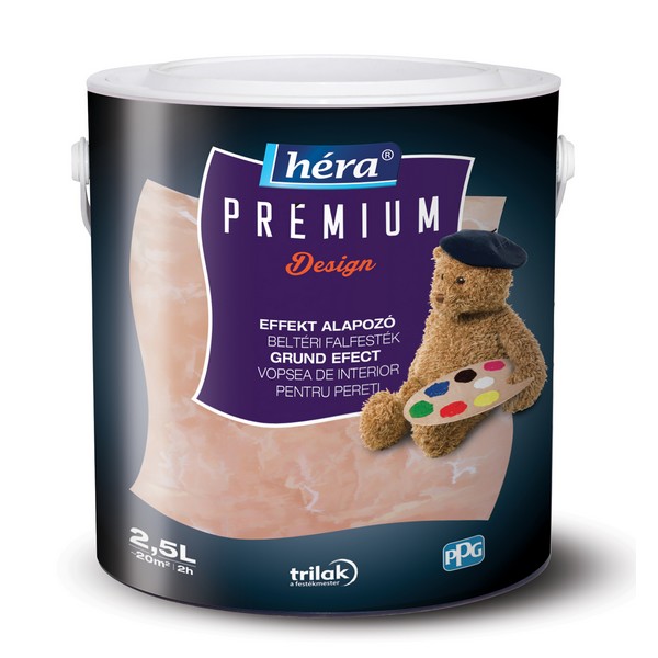 – A Héra Prémium Design Effekt alapozó beltéri falfesték, felhasználásra készen, 2,5 l-es kiszerelésben kerül forgalomba. A terméket a feldolgozás előtt keverd fel!
