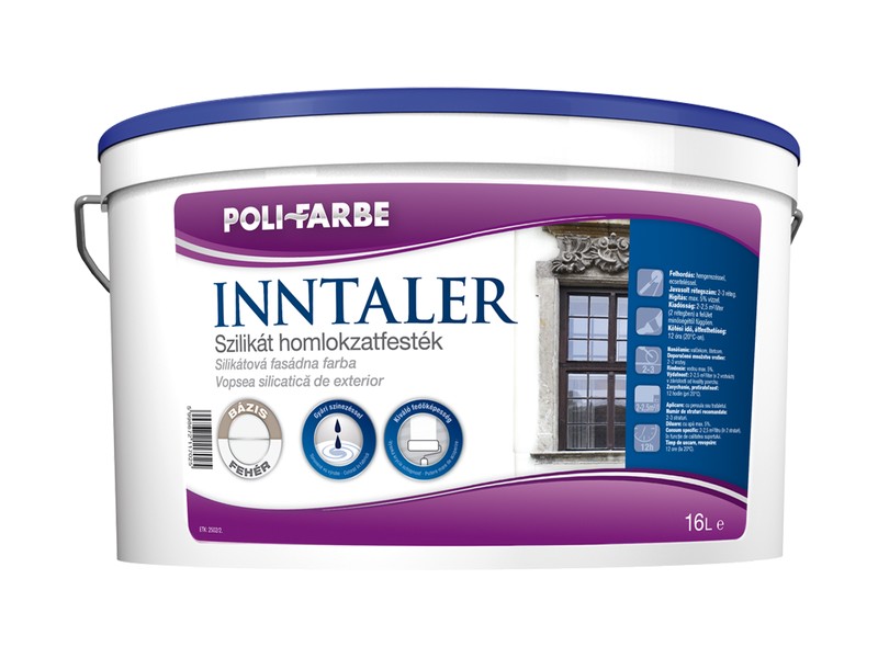 A Poli-Farbe Inntaler szilikát homlokzatfesték műemlék épületek kültéri festésére is alkalmas, magas minőségű, szilikát (vízüveg) alapú homlokzatfesték. Lég- és páraáteresztő képessége kiemelkedő, természetes átszellőzést biztosít.  Bevonata matt, színtartó, rugalmas, kiváló időjárás-állóságú, az alaphoz kiválóan tapad, így a diszperziós és a hagyományos szilikátfestékek tulajdonságait egyesíti.